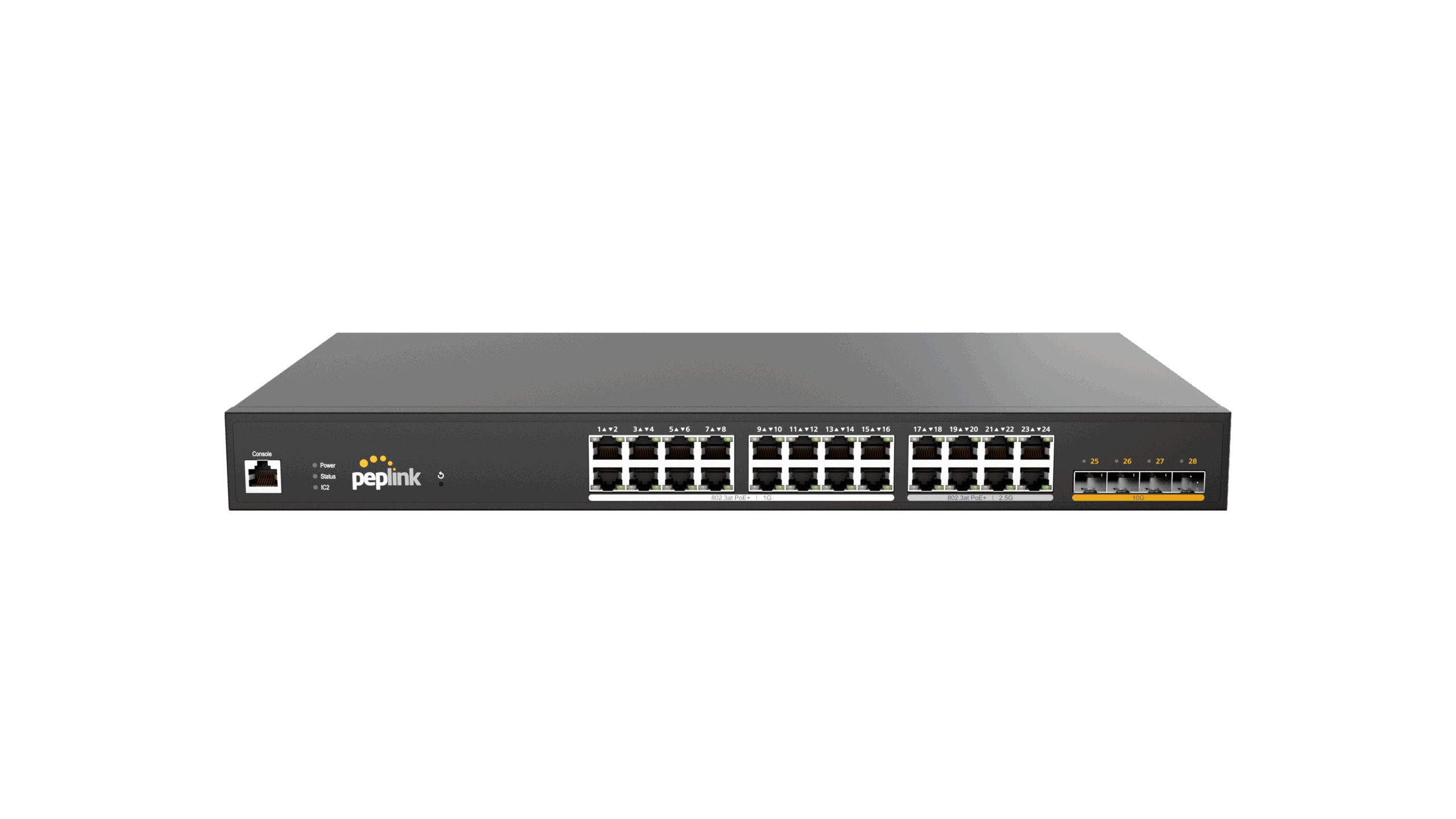 Flexible managed 24-port POE switch in the Peplink ecosystem.